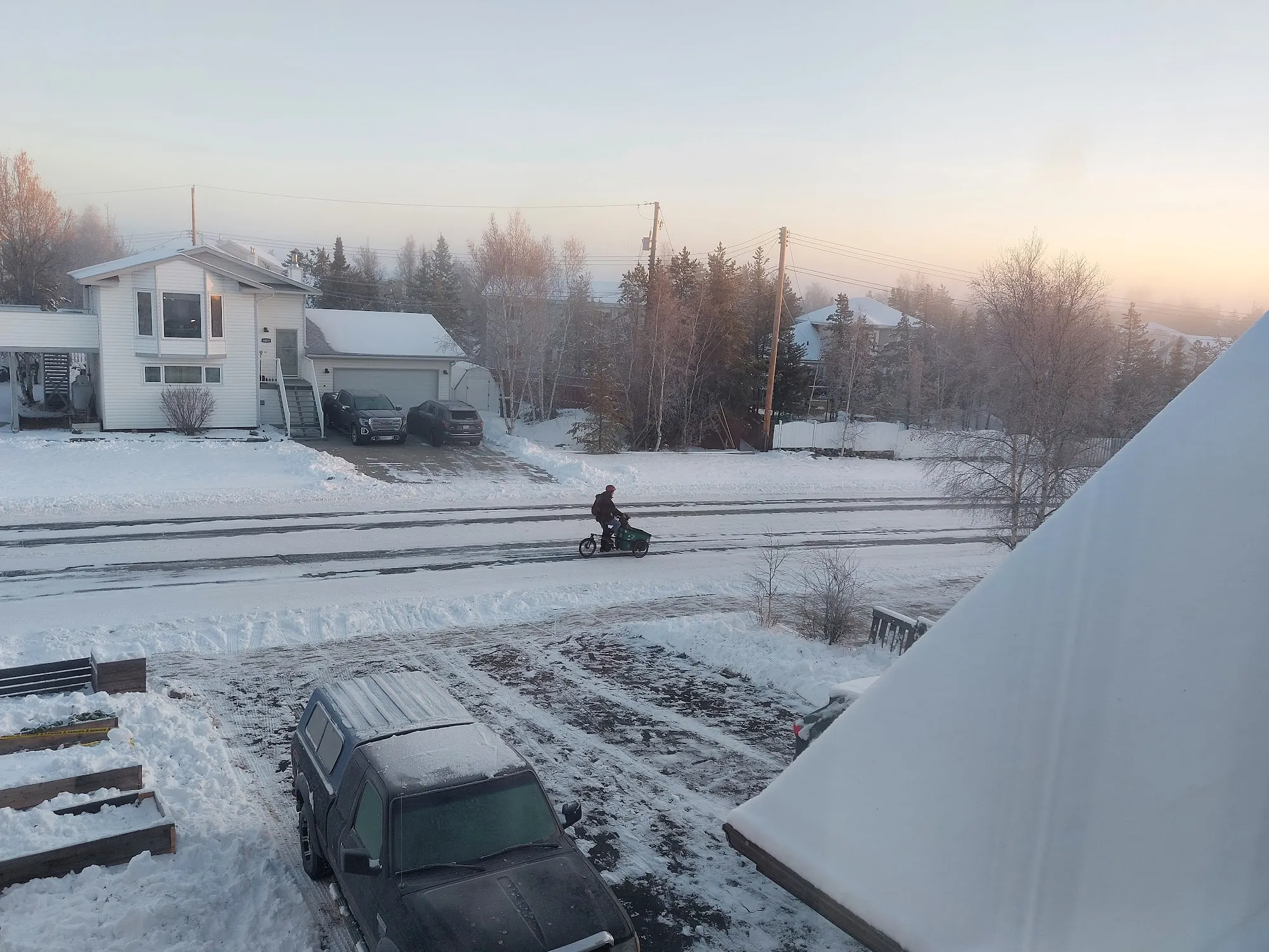 3. When you think about having to plug in a vehicle, warm it up, scrape the windshield, find parking, etc, biking is often way less hassle than driving;